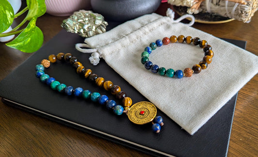 Azurite & Tiger's Eye Mala Set 27-Bead Pocket Mala and Wrist Mala Bracelet | Reiki-Infused Meditation Jewelry for Yoga and Mindfulness