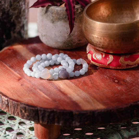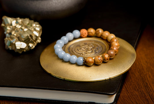 Angelite & Picture Jasper Wrist Mala Bracelet Reiki-Infused for Inner Peace and Grounding