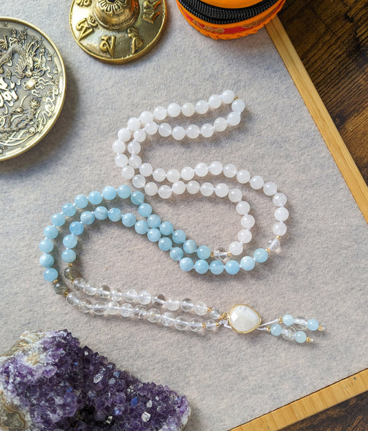 AQUAMARINE MALA, 108 Buddhist Prayer Beads, Meditation Necklace, Self-Care Gift