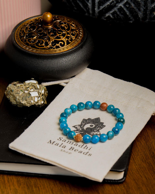 Apatite Wrist Mala Bracelet 8mm Reiki-Infused Gemstone Jewelry for Meditation, Healing & Mindfulness