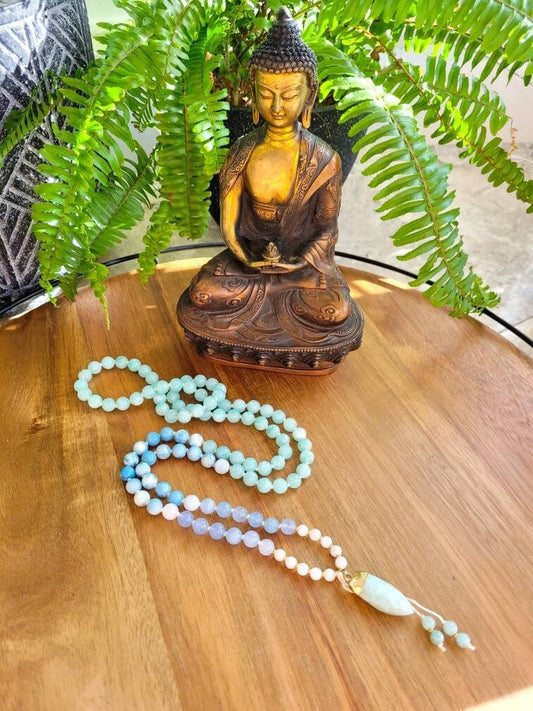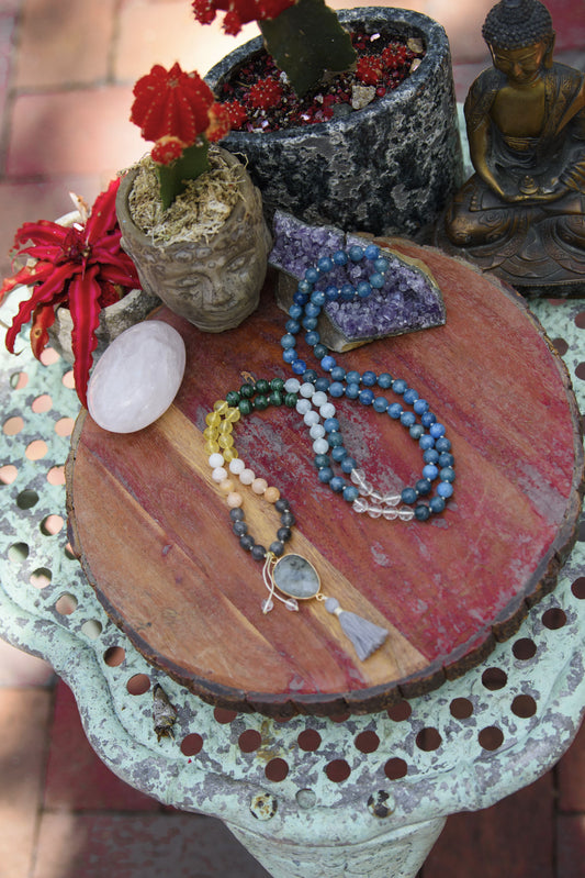 Harmonizing Chakra Mala - 7 Chakra Gemstones: Apatite, Labradorite, Peach Aventurine, Citrine, Malachite, Aquamarine & Clear Quartz