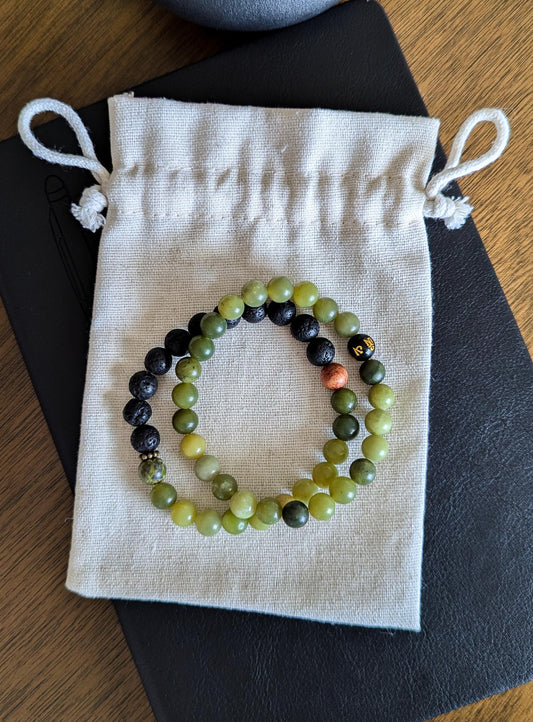 Jade & Lava Rock Bracelet Set - Reiki-Infused Healing Jewelry, Essential Oil Diffuser, Custom Sizes