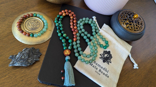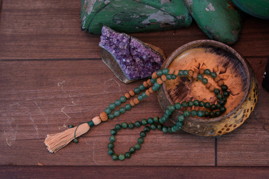 Green Aventurine, Jade, and Sandalwood 108 Mala Wrist Mala Bracelet and Pocket Mala, Abundance and Heart Chakra Healing