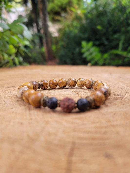 Grounding Mala Bracelet, Lava Rock Jasper Rudraksha Beads, Mindful Gift