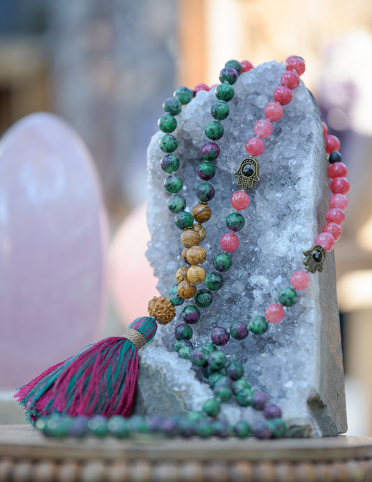 Heart Chakra Awakening Mala - Ruby Zoisite, Red Angelite, and Picture Jasper