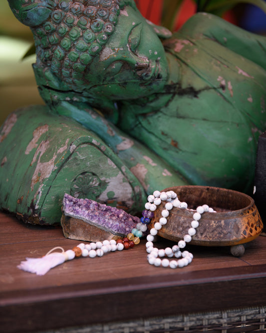 Howlite Mala Necklace, Buddhist Prayer Beads, 108 Japa Mala, Meditation Beads, Reiki Healing Beads, Chakra Mala, Mala Beads 108
