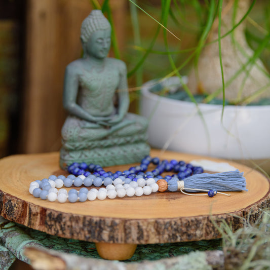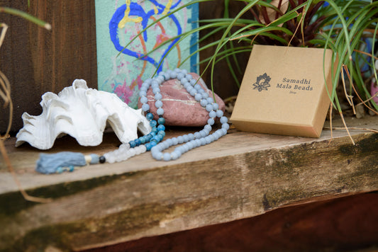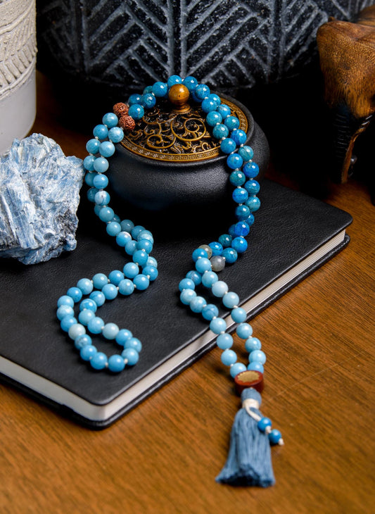 Mindful Serenity Mala - Angelite, Apatite & White Jade, 108 Mala Beads