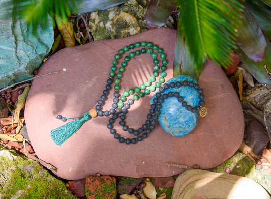Lava Rock & Jade Mala, Reiki infused Beads Mala, Healing Necklace, Hand Knotted 108 Mala Beads, Tassel Necklace, Japa Mala, Meditation Mala