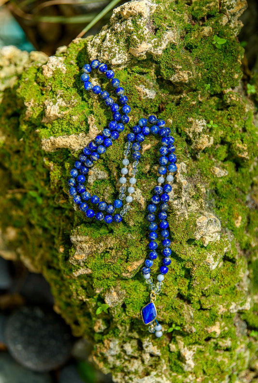 Lapis Lazuli, Angelite & Clear Quartz mala, Japa Mala, 108 Prayer Beads, Yoga Meditation Beads, Meditation Mala, Gift for Yoga Lovers