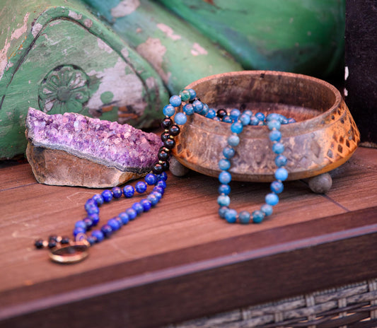 Lapis Lazuli Apatite & Black Tourmaline Mala, 108 Mala Beads, 108 Japa Mala, Mediation Beads, Empath Protection Mala, Yoga Mediation Beads