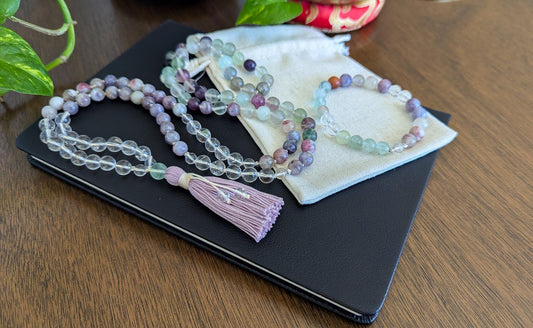 MASTER HEALER MALA, Fluorite, Pink Tourmaline & Clear Quartz Mala 108 Beads for Clarity, Love, and Spiritual Balance