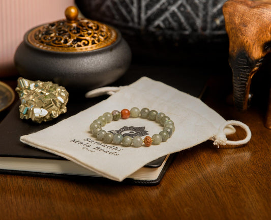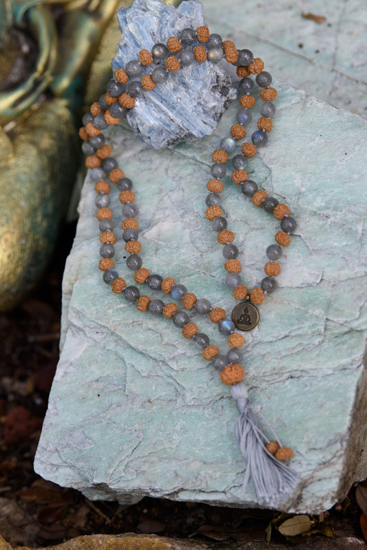 Labradorite and Rudraksha Seed Mala - Transformation, Protection, and Spiritual Growth