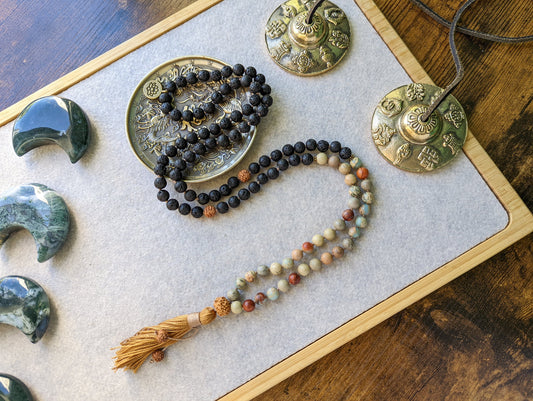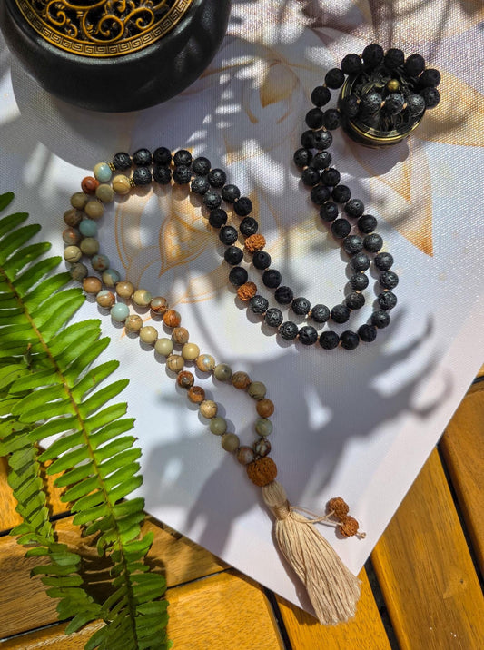 Lava Rock Mala, Buddhist Prayer Beads, 108 Japa Mala, Reiki Charged Beads, Self-Care Gift