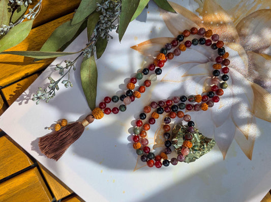 Maternity & Fertility Mala Beads 108 Reiki-Infused Necklace with Carnelian, Bloodstone, Garnet, Red Jasper and Rudraksha