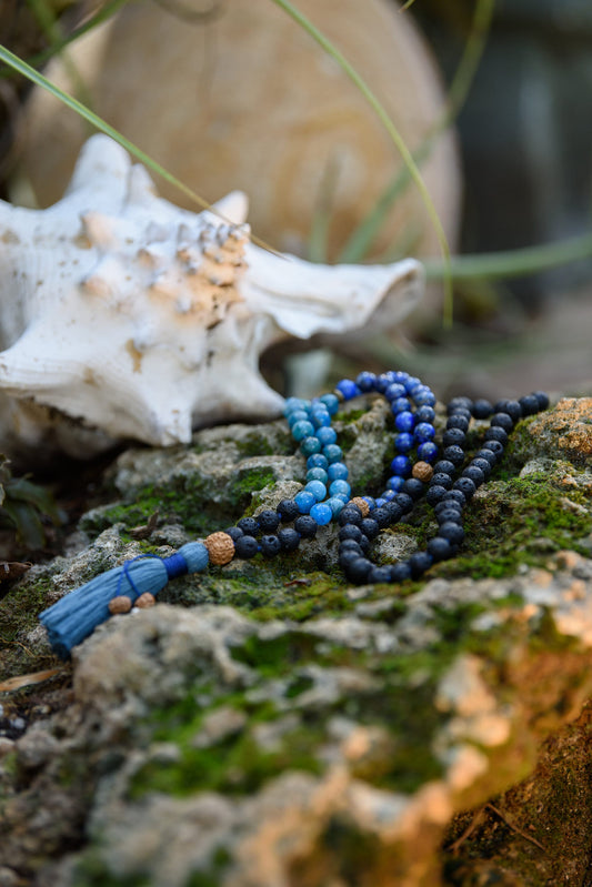 Lapis Mala, Throat and Third Eye Mala Necklace, 108 Mala Beads, Reiki Charged Beads, Yoga Meditation Necklace