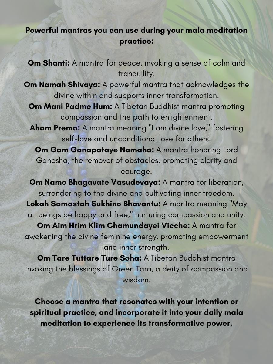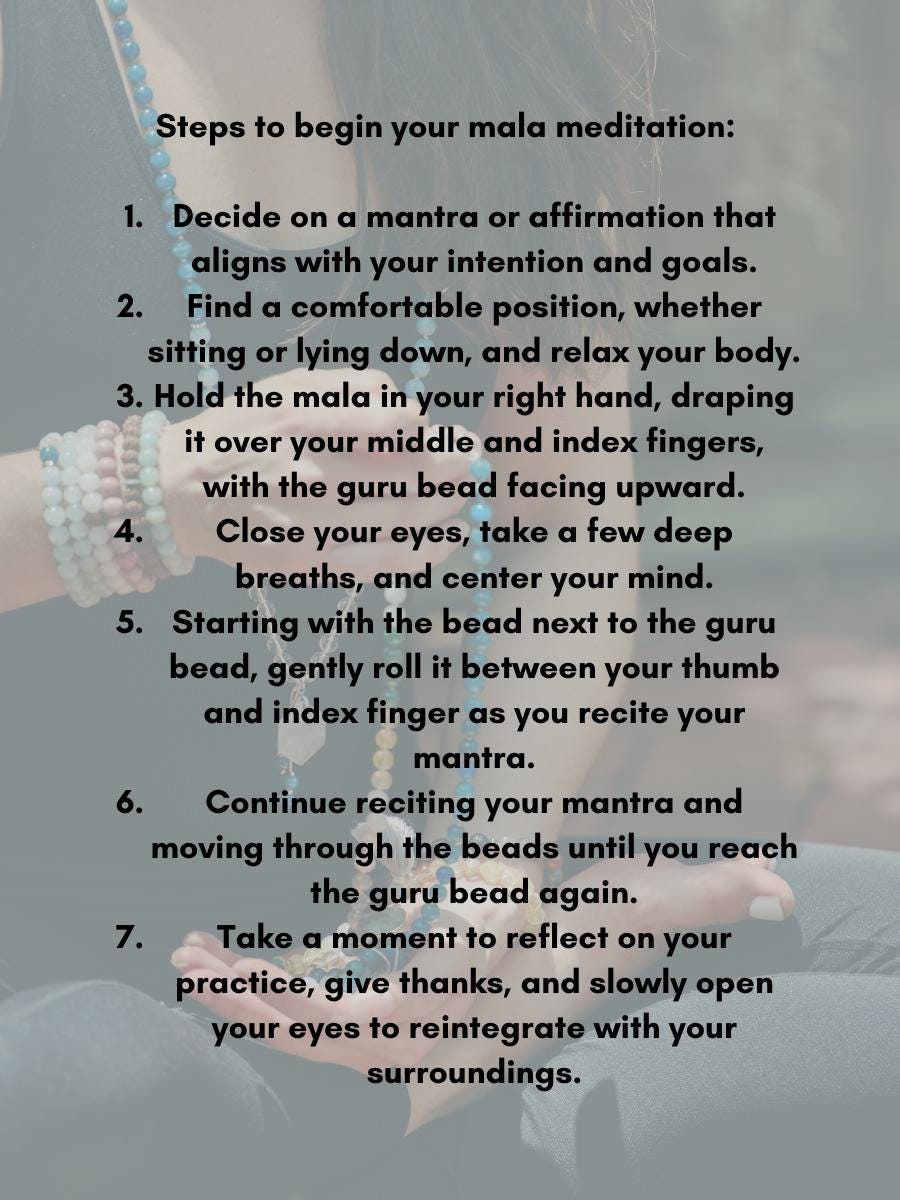 A mantra card with instructions for using your mala.